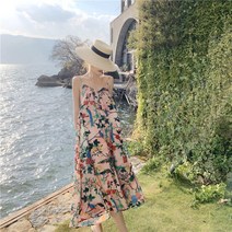 해피 플라워 A라인 나시 원피스 비치롱드레스