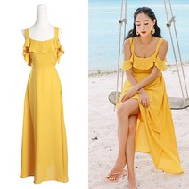 비치팜 쉬폰 오프숄더 롱 비치 휴양지 드레스 윈드 프릴 원피스