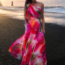 바캉스 비치 휴양지 룩 원피스 비치웨어 동남아 해외여행 흐르는 큰 밑단 홀치기 염색 무지개 프린트 레이디 롱 드레스 편안한 우아한 드레스 민소매 파티 의류