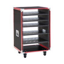 바퀴달린 오디오 진열장 믹서 수납 선반 캐비닛 장비, AD.16U 빨간색 알루미늄 5개 구획 전면 투명 도어