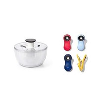 OXO 굿 그립 대형 샐러드 스피너 6.22 Qt 화이트, Large Salad Spinner + Bag Clip
