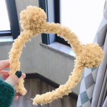 동글한 털 곰 곰돌이 귀 머리띠 귀여운 놀이동산 동물 인형 할로윈 헤어밴드 롯데월드 핑크, 그레이